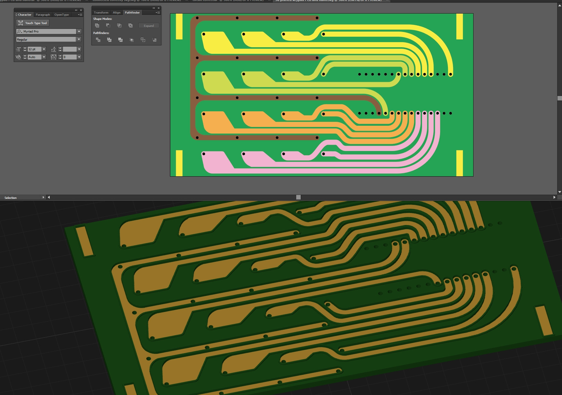 - Design your PCB in any vector editor. Export as SVG — traces as filled shapes, holes as circles.